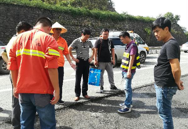 10月10日,集團總工程師江輝帶領工程養護部人員到臨海南匝道病害現場檢查。