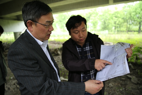 細(xì)雨中,陳文波一行踏勘走訪了院橋大拉溝104國道跨高速公路主線施工現(xiàn)場、庫灘橋14國道橋洞、院橋互通1號(hào)橋等地,了解在實(shí)際工作中存在的一些難點(diǎn)問題和存在的安全隱患。