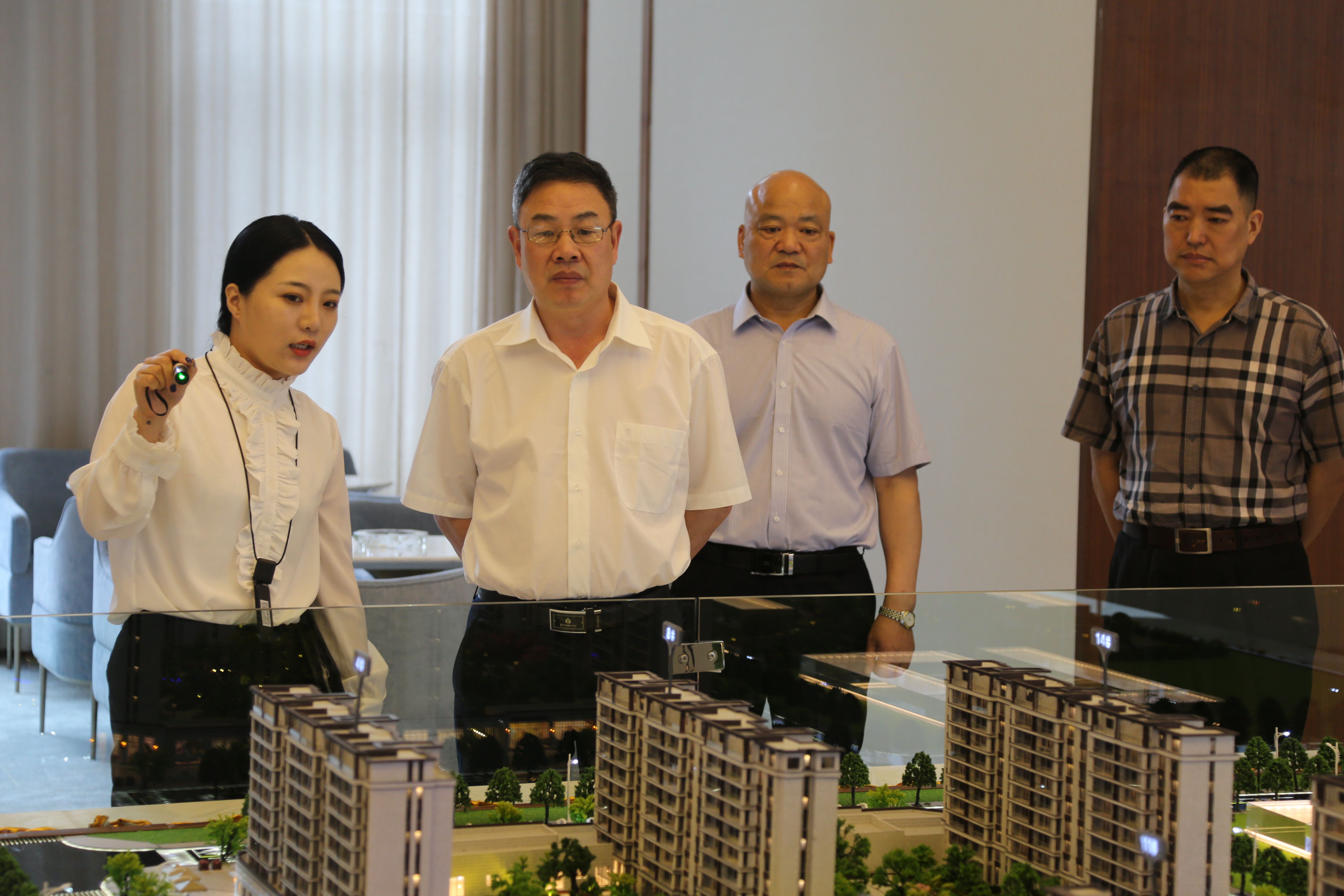 圖為集團領導陳文波參觀玖璽逸墅銷售展廳