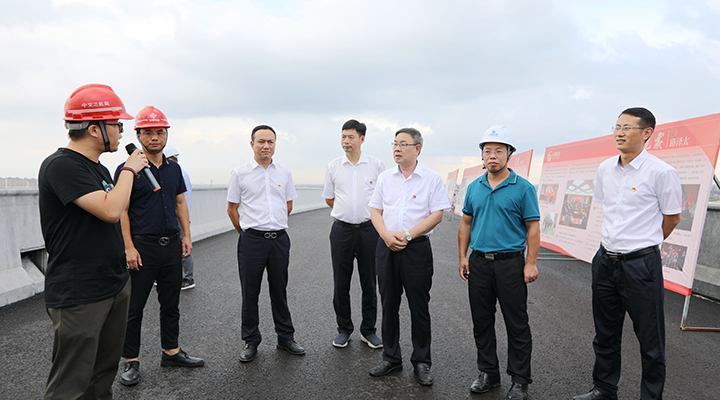 一行人先后來到路澤太三標(橋上架橋)、路澤太二標(機場樞紐)現場進行實地參觀在現場聽取了路澤太人員的情況介紹,感受到了路澤太快速路的恢弘氣勢,并為作業人員們熱火朝天的干事氛圍所感染。現場人員對路澤太公司只爭朝夕搶進度、精益求精重質量、全力以赴保通車的責任感和使命感表示高度贊賞。